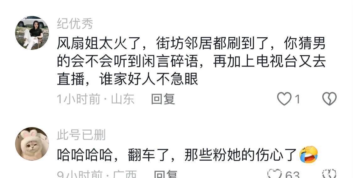 “风扇姐太火了,街坊邻居肯定也刷到了,前夫哥这么一听能愿意吗?”
